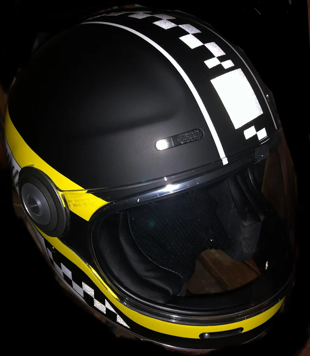 Le damier VFLUO sur un casque bullit… super effet rétro… super bien vu!!